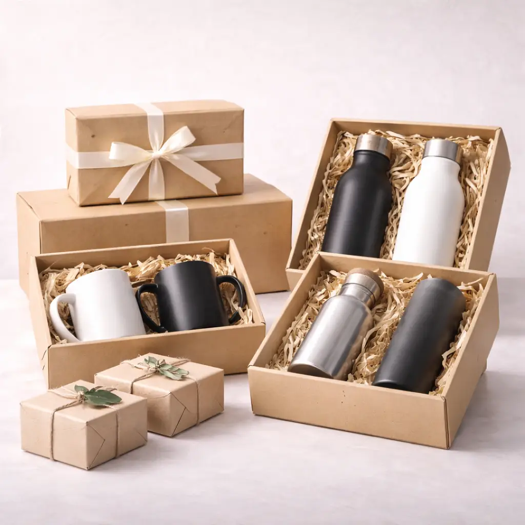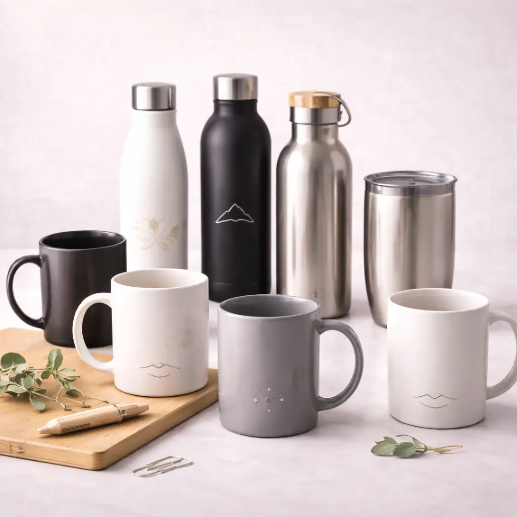 Choose from coffee mugs, insulated bottles, tumblers, and premium drinkware suitable for corporate gifting.
